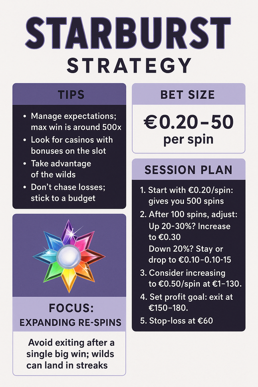 - Avoid High Bet Levels: Unless you have a large bankroll, don't chase big wins—Starburst is not high-risk/high-reward.