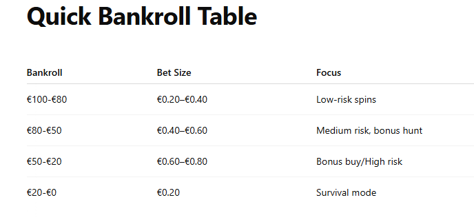 - If Bonus Buy is available at €30-€50 range and you haven’t triggered Free Spins naturally, consider buying the bonus.